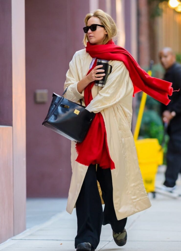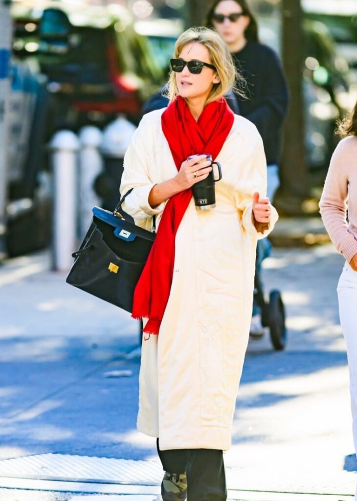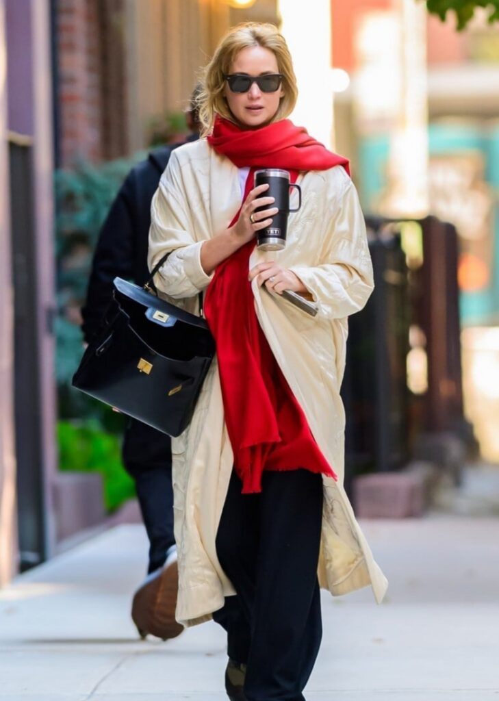 Jennifer Lawrence se agasalha para uma caminhada matinal em Nova York