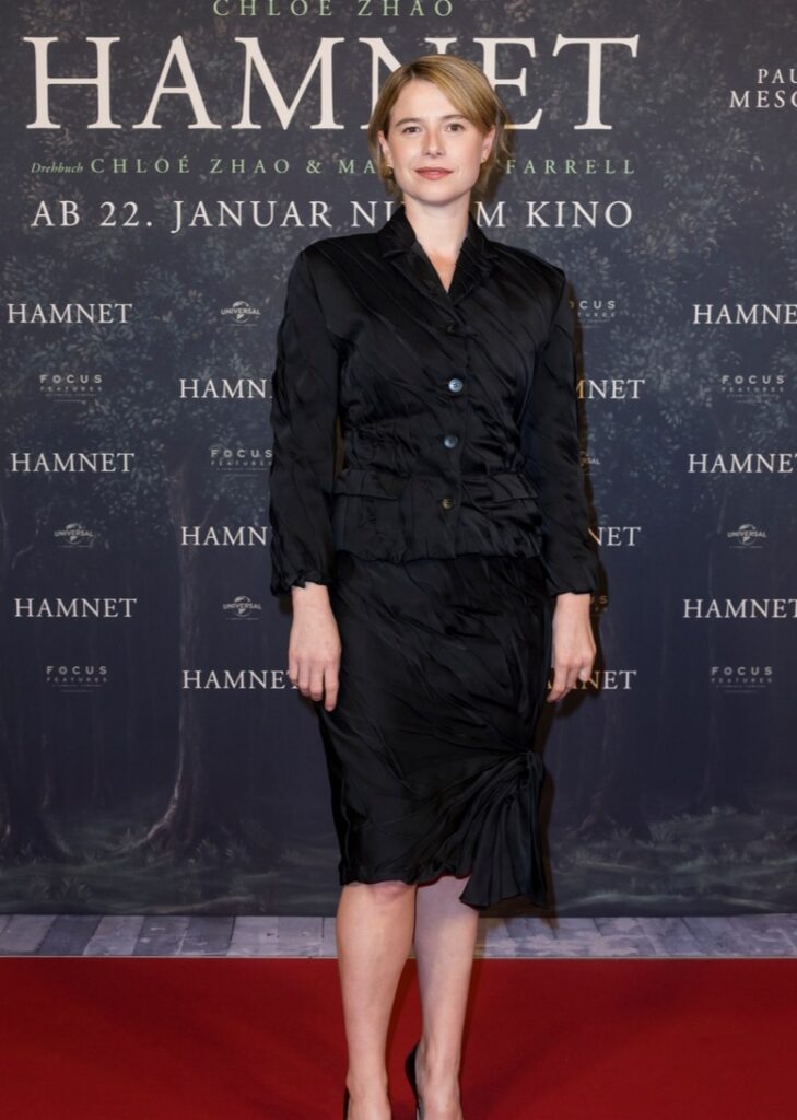 A atriz de 35 anos acompanhou a diretora Chloé Zhao no tapete vermelho da estreia de seu novo filme, Hamnet, na segunda-feira (8 de dezembro), realizada no Delphi Filmpalast, em Berlim, Alemanha.