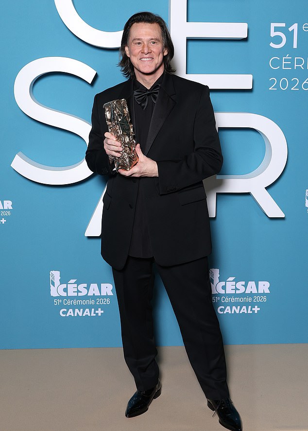 Jim Carrey, de 64 anos, fez uma rara aparição para receber a principal homenagem no César Awards, em Paris, após se afastar dos holofotes devido a uma série de escândalos.