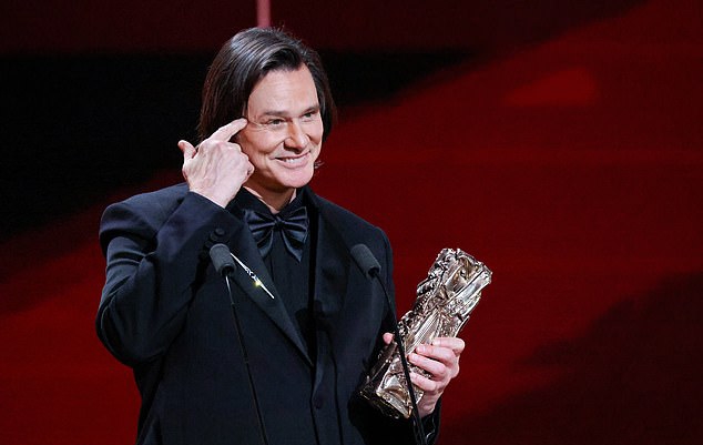 Jim Carrey fez um raro retorno aos holofotes após uma série de escândalos ao ser homenageado na 51ª edição do Prêmio César, na quarta-feira.