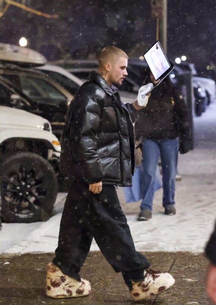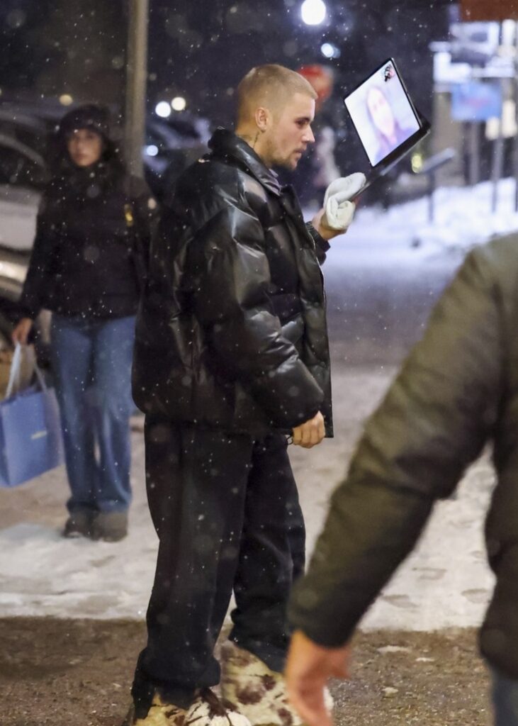 O cantor de “Peaches”, de 31 anos, foi visto carregando seu laptop enquanto fazia uma chamada de vídeo com a esposa, de 29 anos, dona da Rhode Island, ao chegar a um restaurante para jantar com amigos na sexta-feira à noite (23 de janeiro) em Aspen, Colorado.