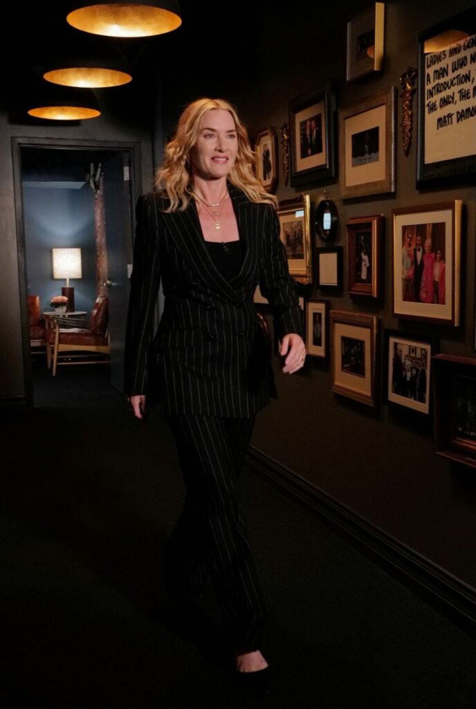 Kate Winslet relembra o vestido de renda transparente que usou ao conhecer o Rei Charles pela primeira vez.
