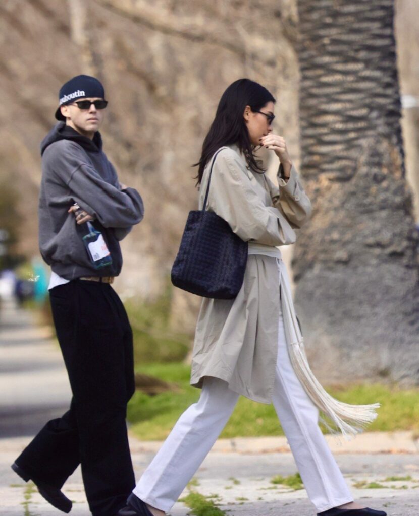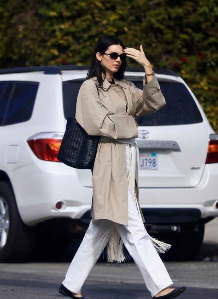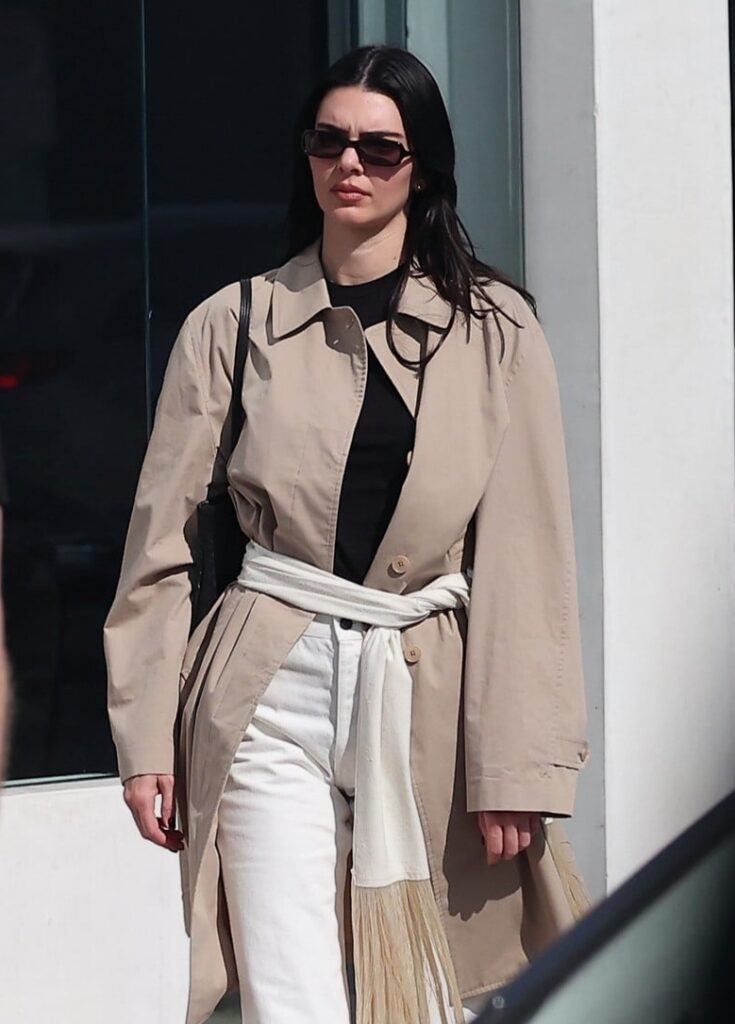 Para o passeio, Kendall estava elegante com um suéter preto e calça de linho branca por baixo de um sobretudo, com um cachecol creme amarrado na cintura, enquanto Harry, de 32 anos, usava um moletom cinza, calça preta e um boné virado para trás.