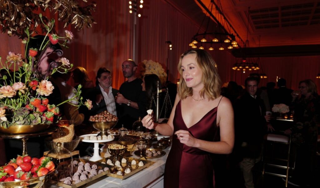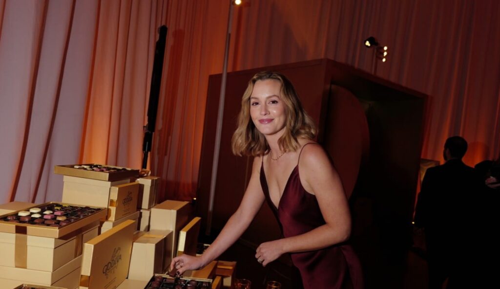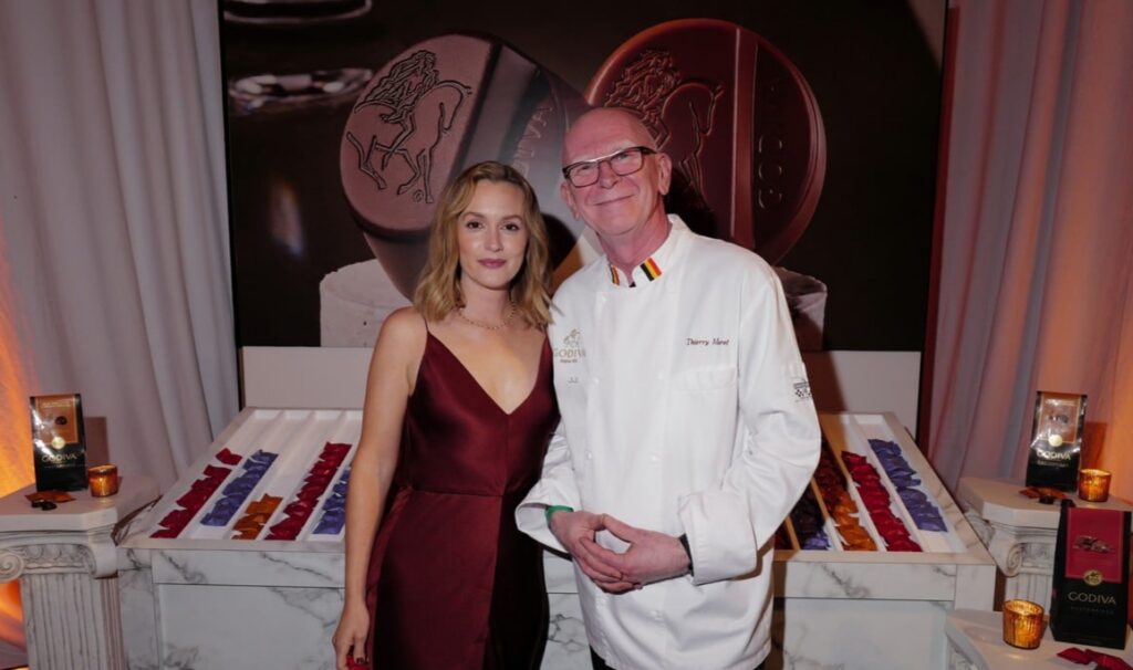 Entre as fotos da estrela de Gossip Girl no evento, havia registros dela posando ao lado de um impressionante cavalo de chocolate feito à mão, do Chef Executivo da Godiva, Thierry Muret, e do Presidente Global da Godiva, Steve Lesnard.