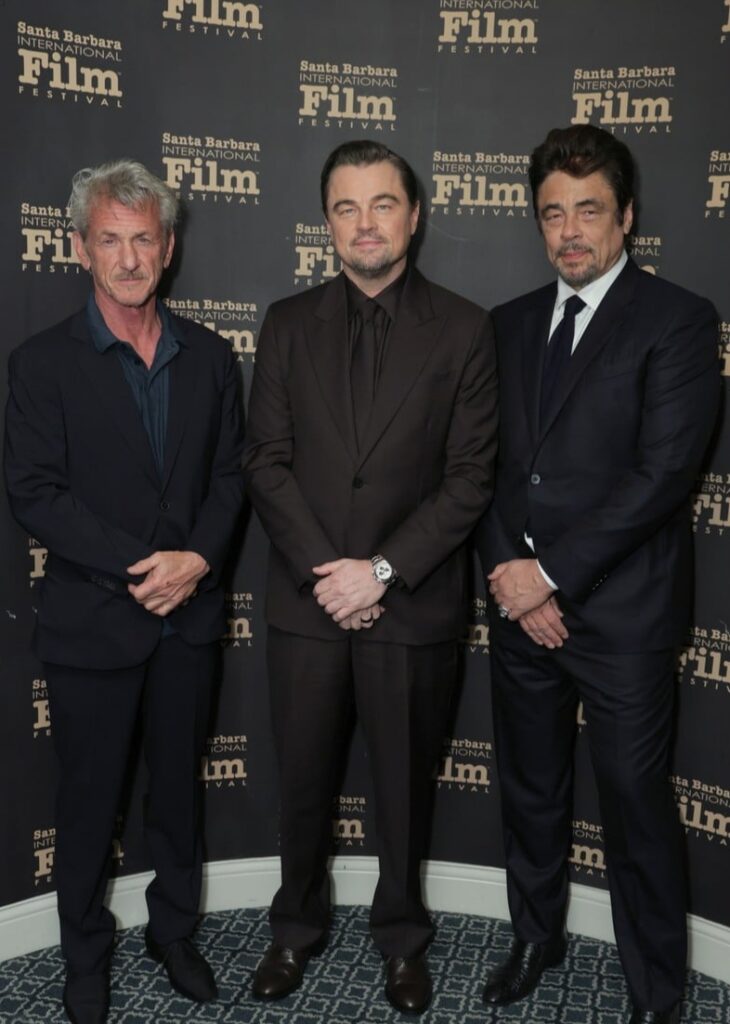 O ator vencedor do Oscar foi acompanhado pelos co-estrelas de One Battle After Another Sean Penn e Benicio Del Toro na cerimônia do Hammond Cinema Vanguard Award na noite de segunda-feira (9 de fevereiro) no Arlington Theatre em Santa Bárbara, Califórnia.