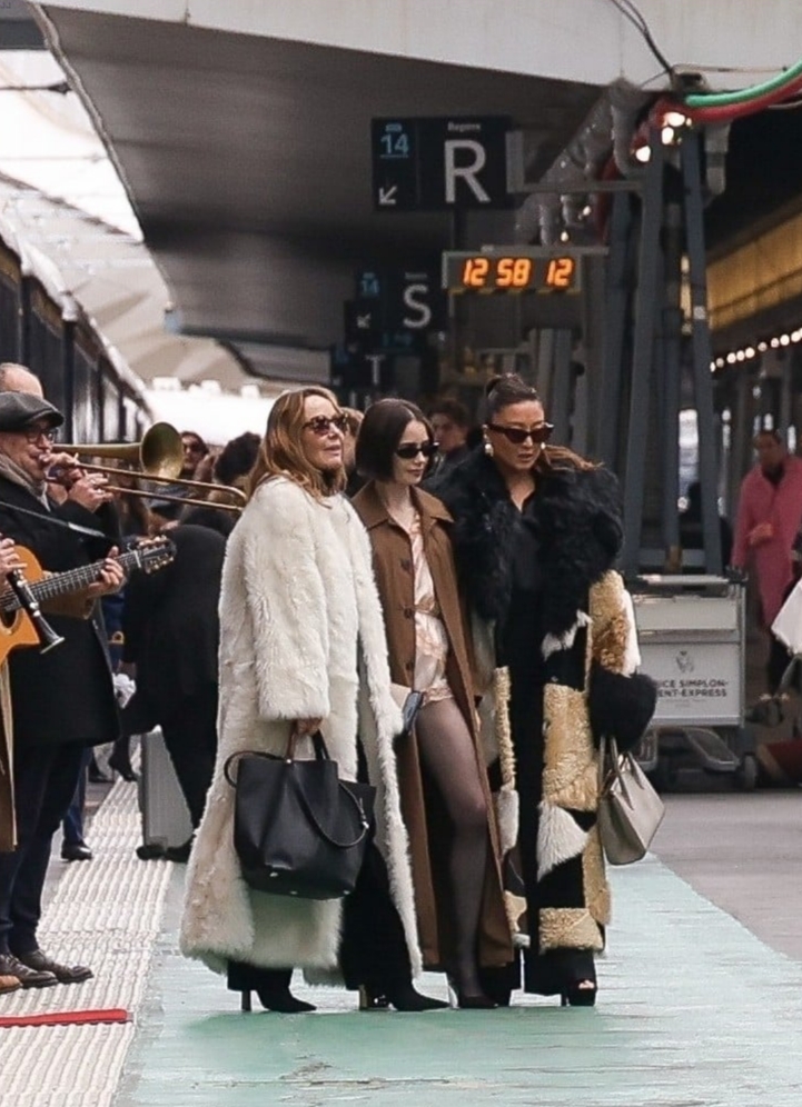 Na véspera, o trio de atrizes foi visto participando de uma sessão de fotos antes de embarcar no trem em Veneza, Itália, onde promoveram a próxima temporada com uma série de eventos.