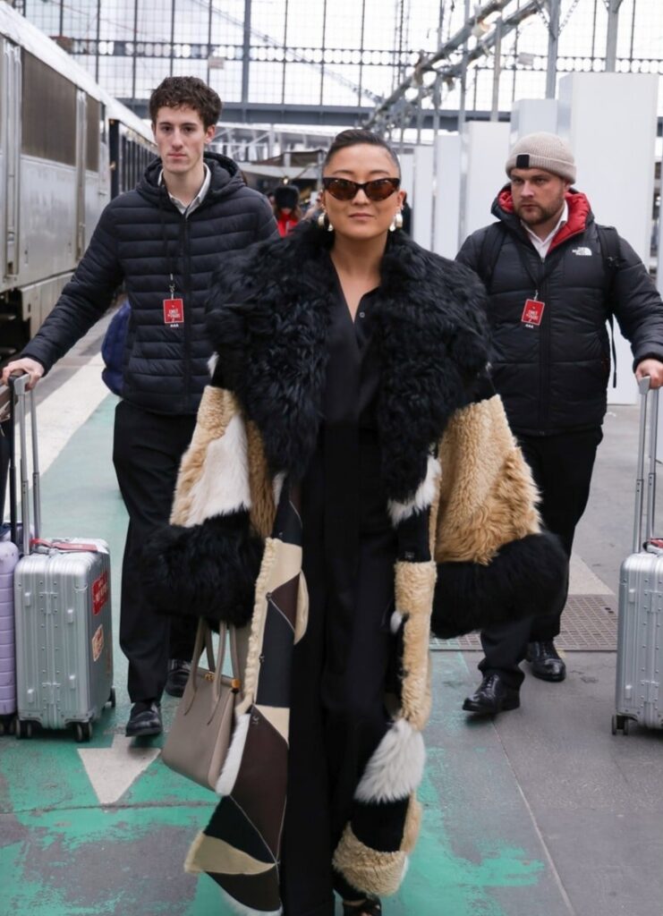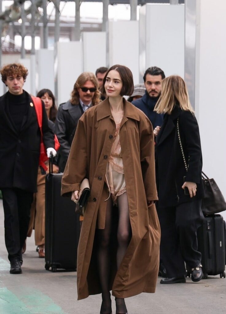 Lily Collins, Ashley Park e Philippine Leroy-Beaulieu foram vistas desembarcando de trem na Gare d’Austerlitz, em Paris, no domingo (14 de dezembro).