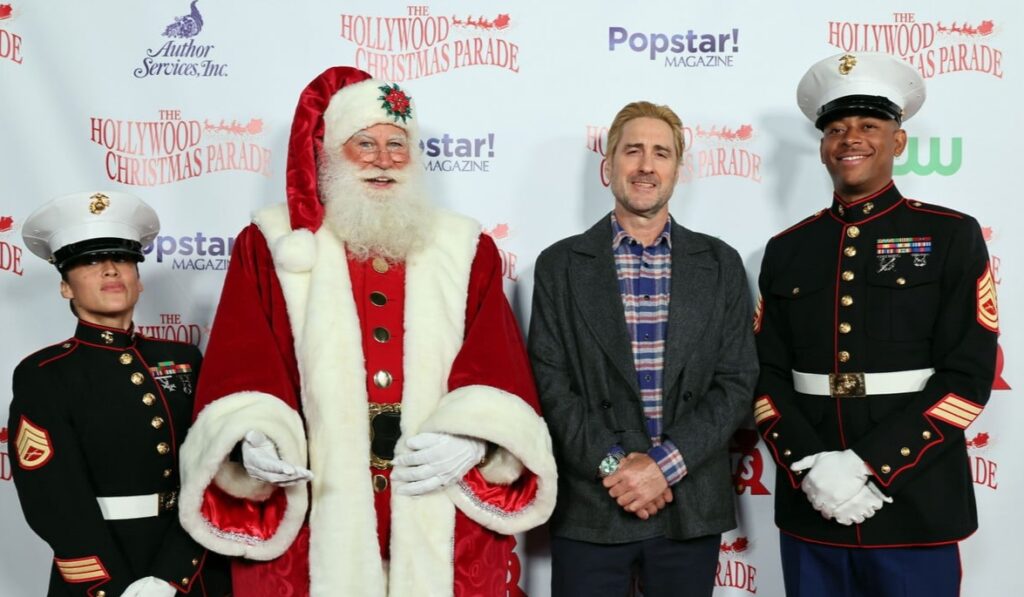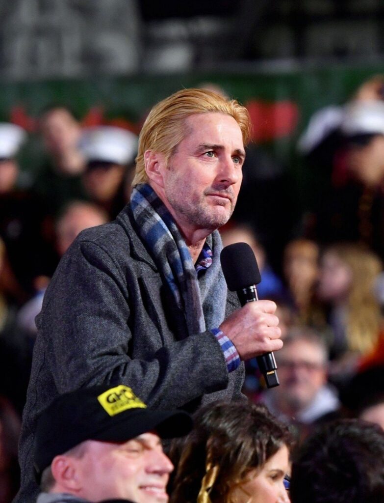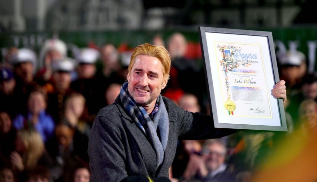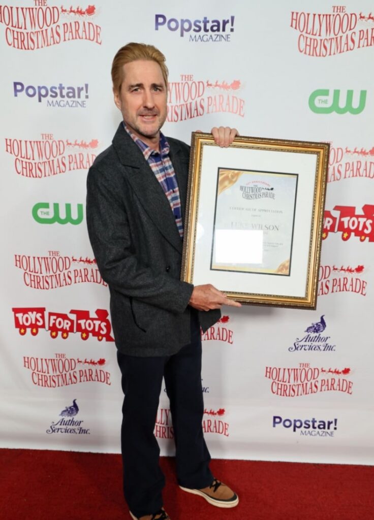 Luke Wilson exibe novo cabelo loiro no desfile de Natal de Hollywood.