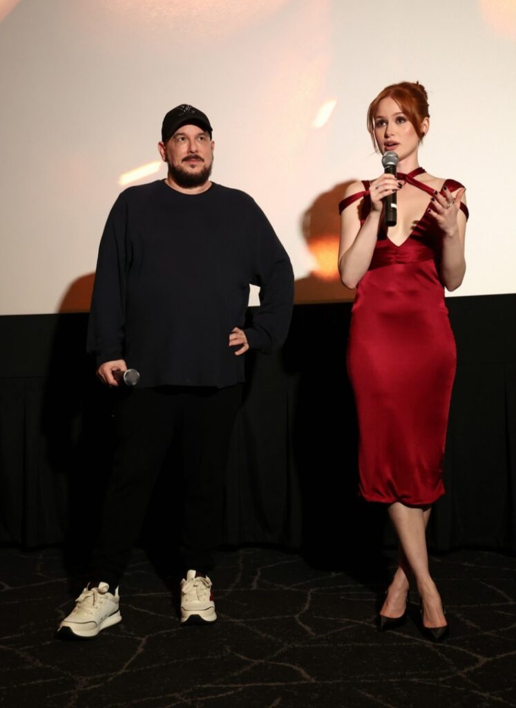 Madelaine Petsch deslumbra com vestido vermelho de alças finas na exibição da trilogia ‘Os Estranhos’