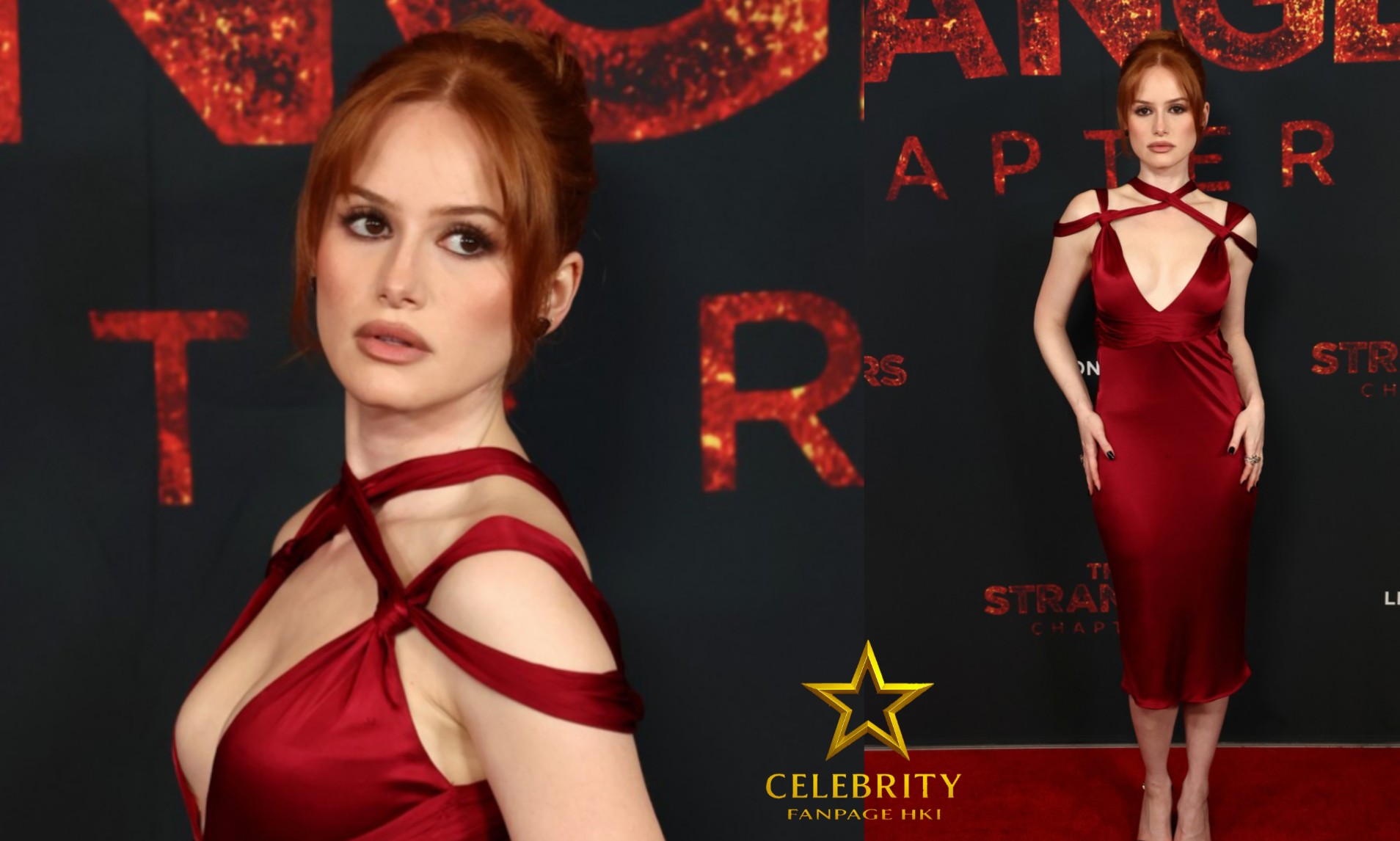 Madelaine Petsch chamou a atenção com um deslumbrante vestido vermelho Tom Ford by Gucci em uma exibição especial da trilogia Strangers!