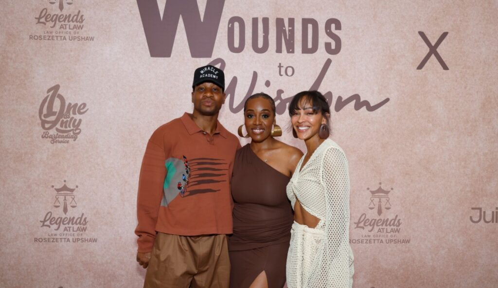 Meagan Good apoia o marido Jonathan Majors em jantar de saúde mental para homens negros em Los Angeles