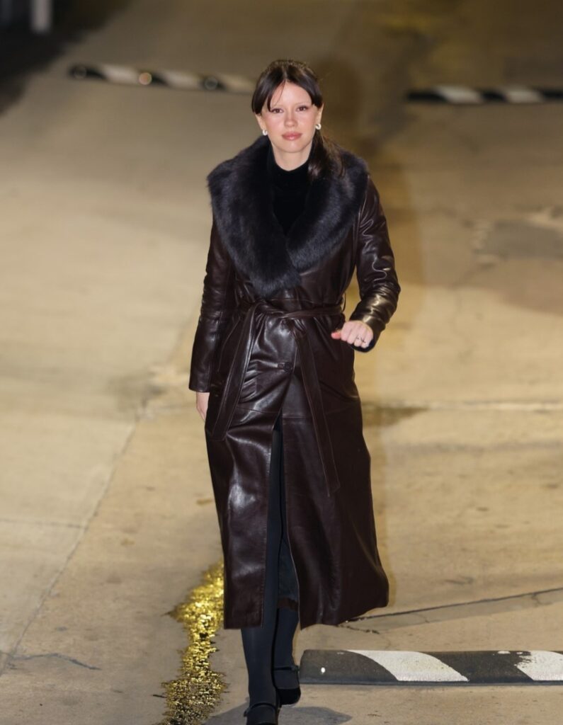 A atriz de 32 anos, conhecida por seu papel em Frankenstein, foi fotografada saindo da gravação do programa Jimmy Kimmel Live! na segunda-feira (15 de dezembro) em Nova York.