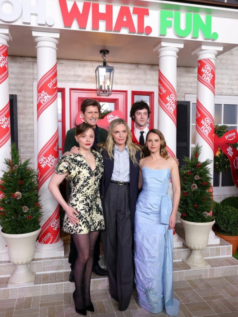 Michelle Pfeiffer posa com sua família do filme natalino na estreia de ‘Oh What Fun’ em Nova York!