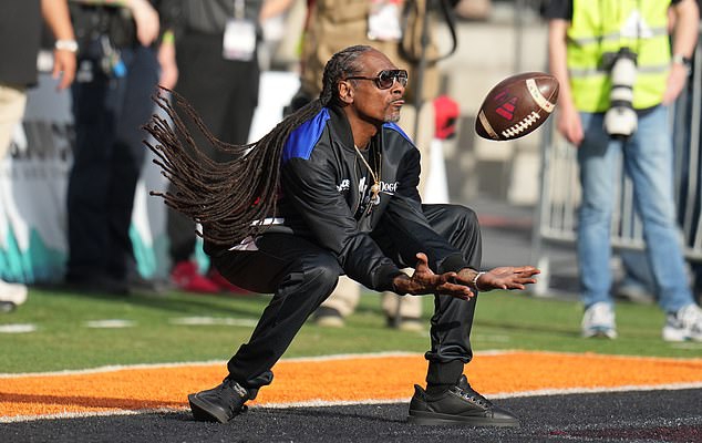 Momento incrível em que Snoop Dogg, de 54 anos, interrompe entrevista para fazer uma recepção espetacular durante seu próprio jogo do Bowl.