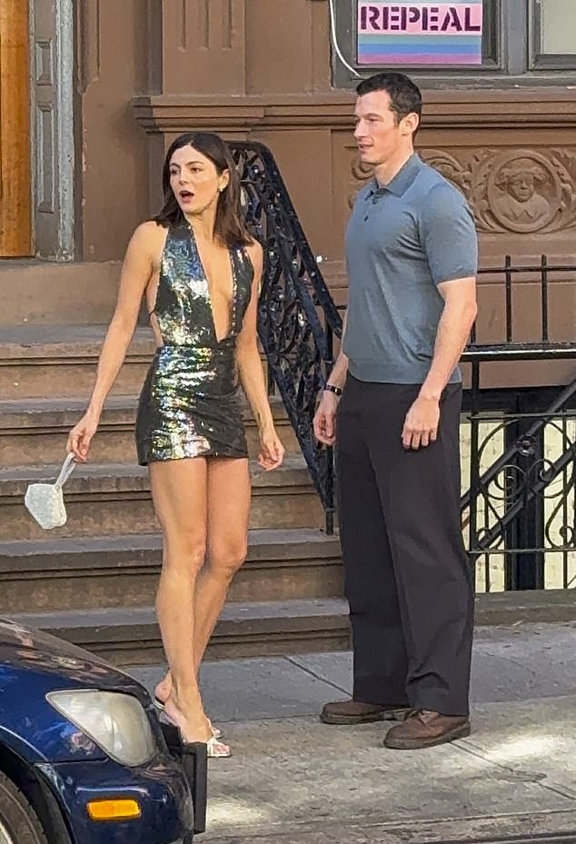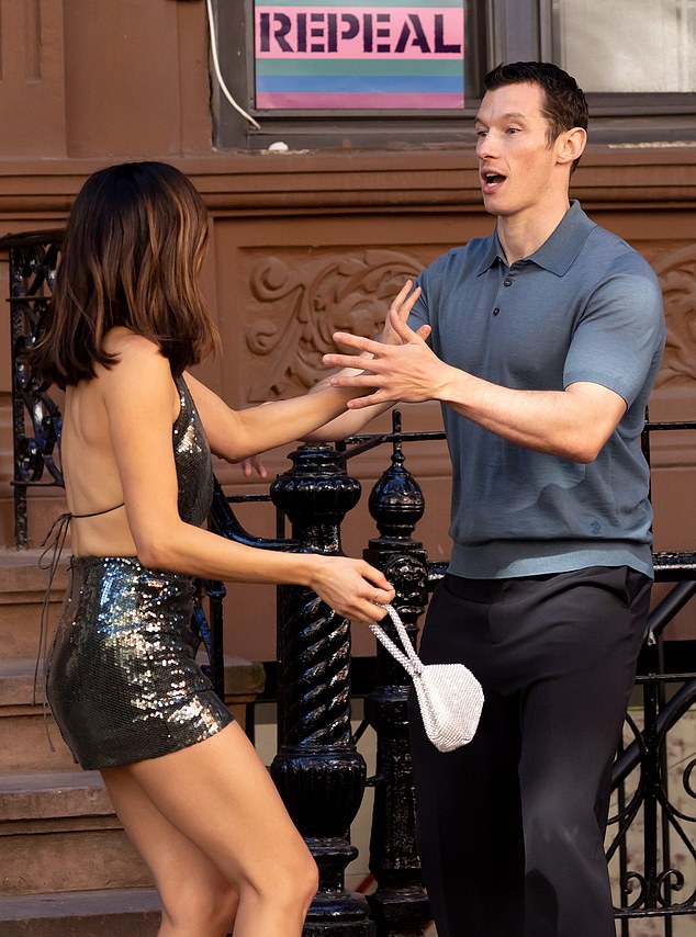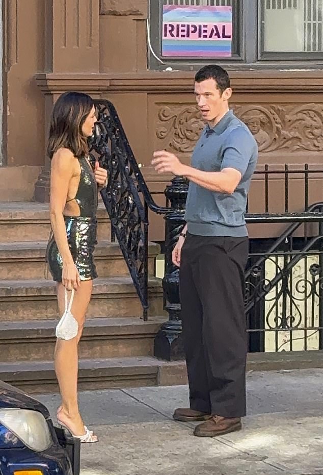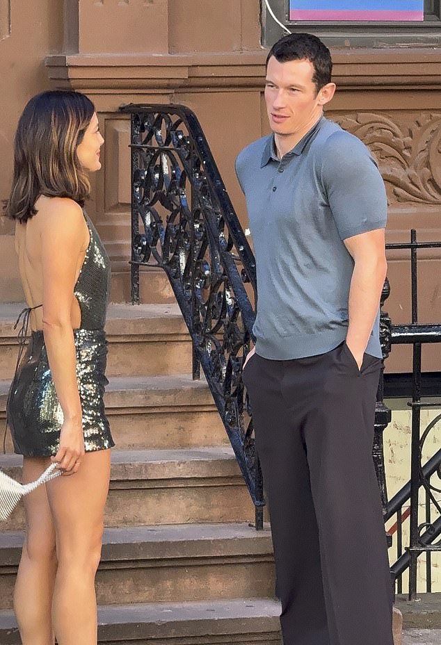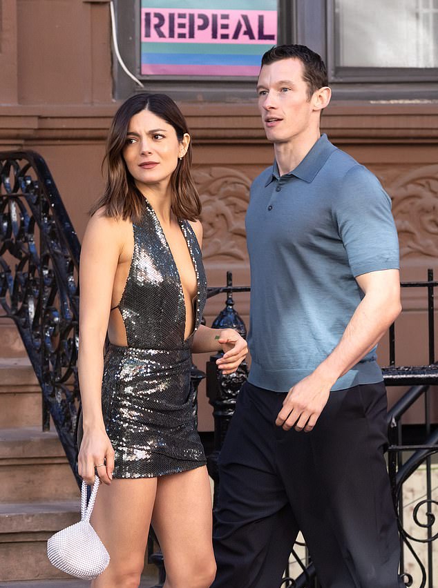 Monica Barbaro e Callum Turner foram vistos no set de seu novo filme, “One Night Only”, em Nova York, no sábado.