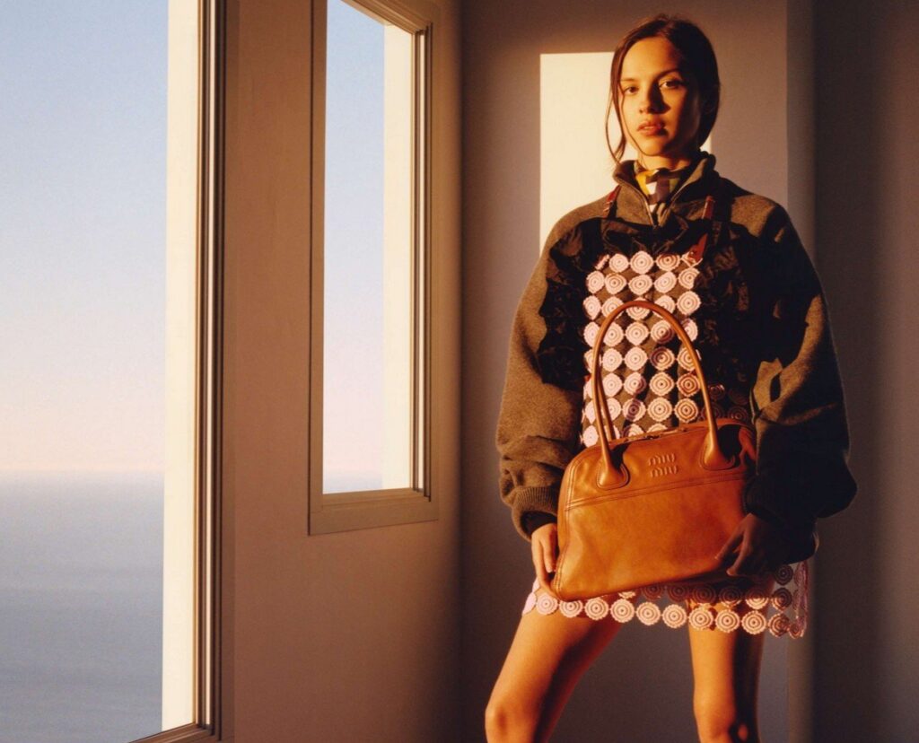 As fotos mostram Olivia modelando diferentes looks e pelo menos uma bolsa Miu Miu.