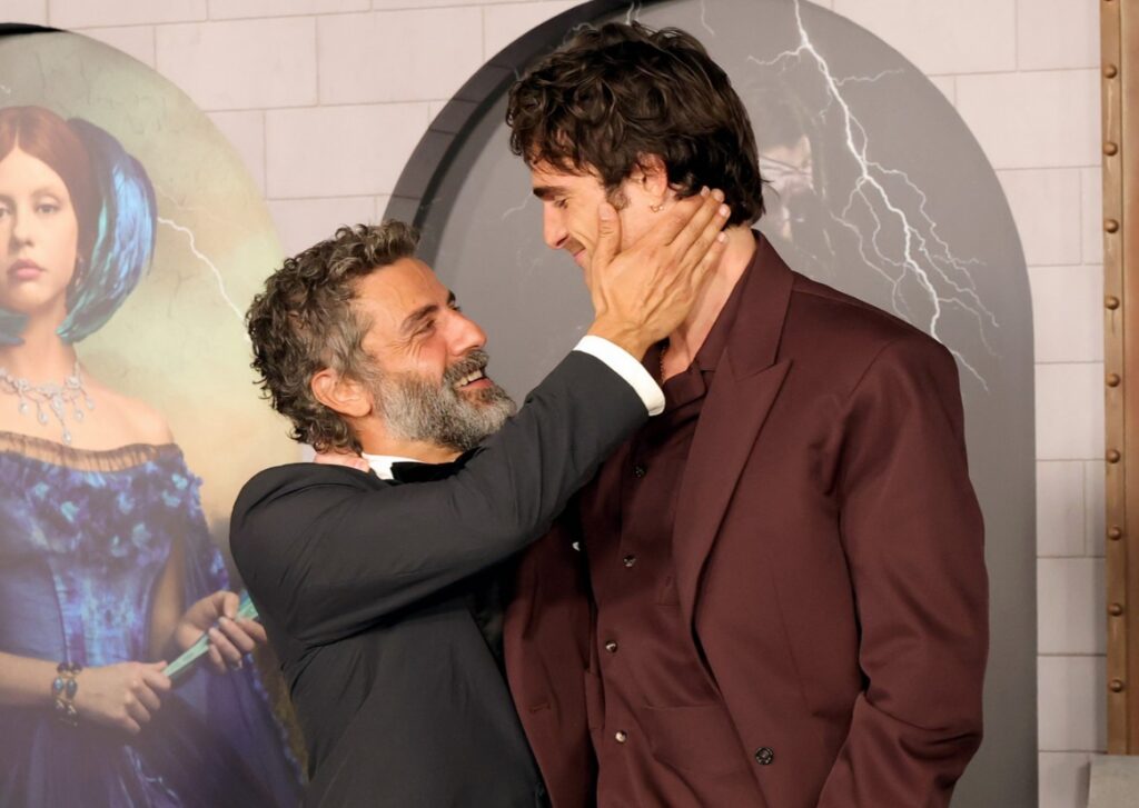 Oscar Isaac e Jacob Elordi compartilham momento de ternura no tapete vermelho de “Frankenstein” na estreia de Los Angeles