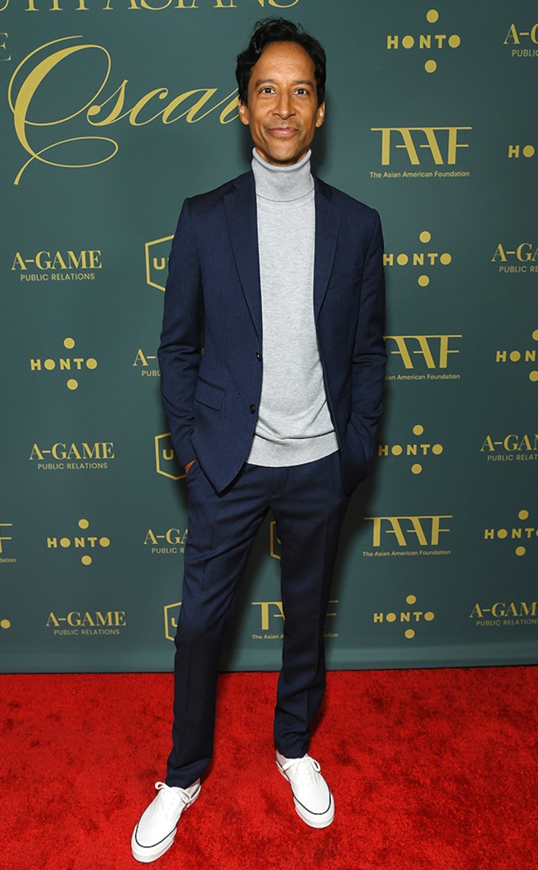 The Community alum wore a sleek suit and turtlenck to the “South Asians at the Oscars” Pre-Oscars Party.