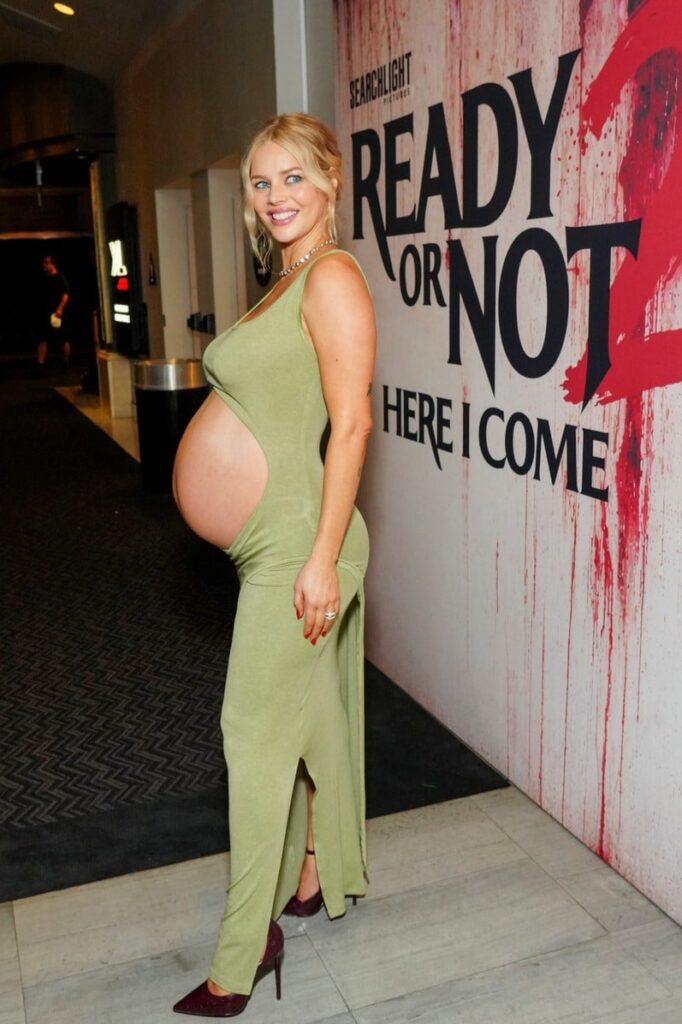 The 34-year-old actress, who is pregnant with her first child, put her baby bump on display in a peekaboo dress at the friends and family screening of Ready or Not 2: Here I Come on Monday night (March 16) at AMC The Grove 14 in Los Angeles.