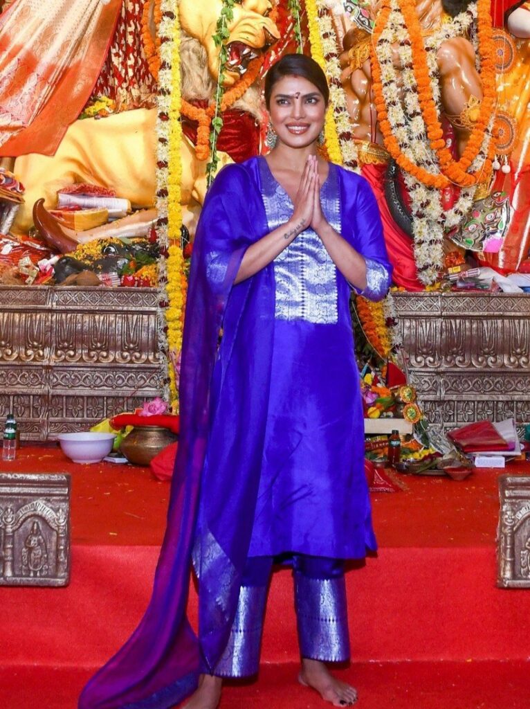 Priyanka compartilhou uma foto da celebração em seus Stories do Instagram e escreveu: “Neste Ashtami, me sinto grata pelas bênçãos de Maa Durga!” Ela também agradeceu aos anfitriões por tê-la recebido no evento.
