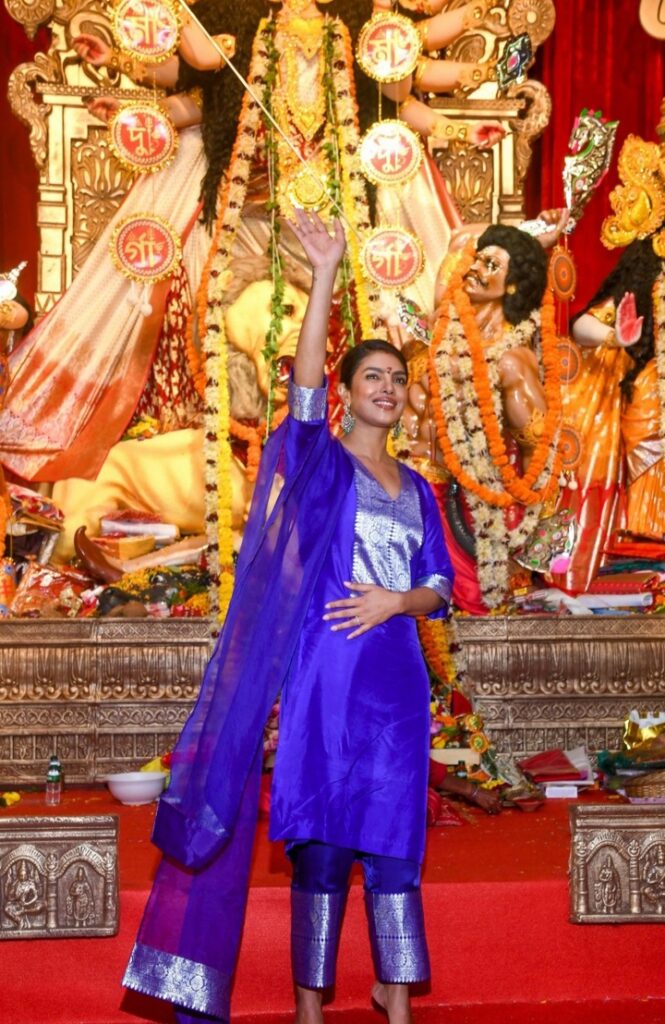 Priyanka Chopra participa da celebração de Durga Puja em Mumbai