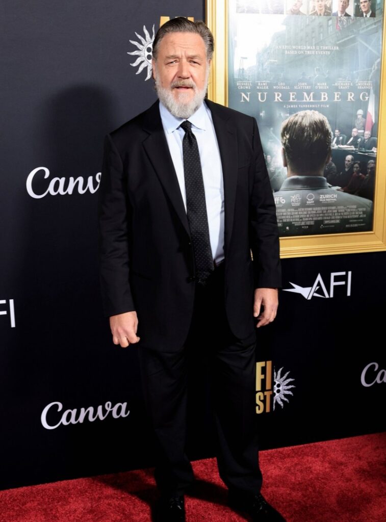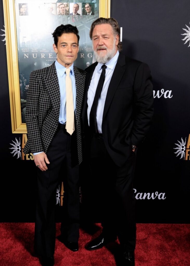 Rami Malek e Russell Crowe compartilham momentos de descontração na estreia de ‘Nuremberg’ no AFI Fest 2025.