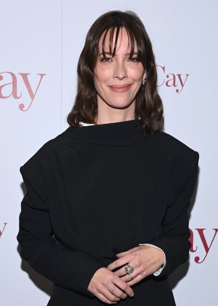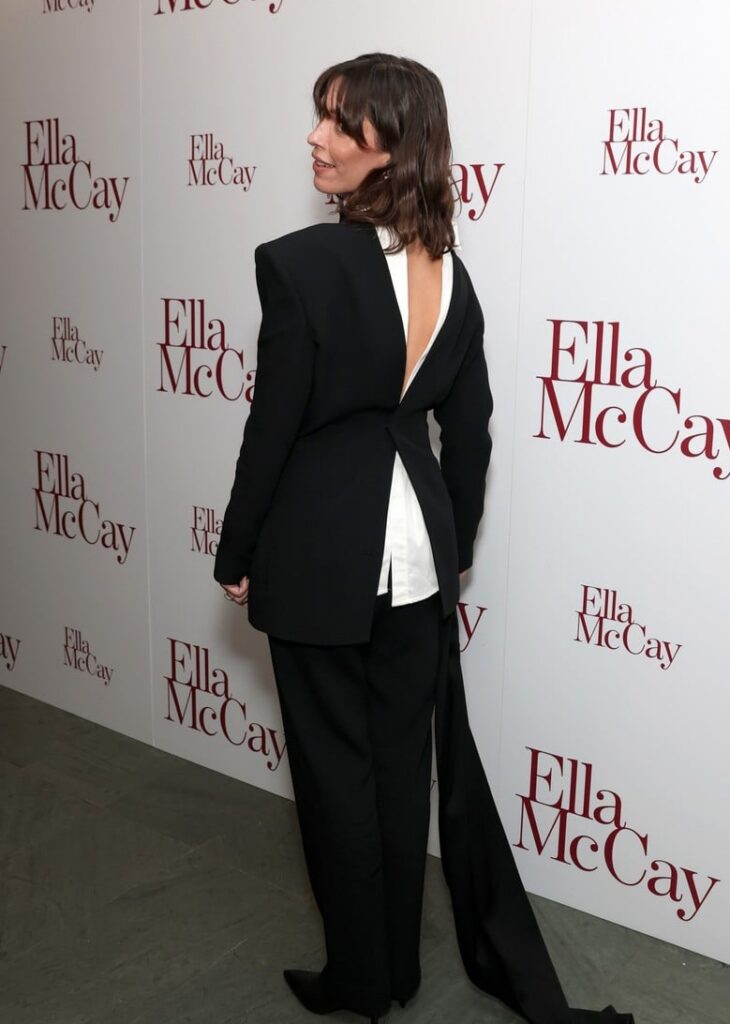 Rebecca Hall usa terno ao contrário na exibição de ‘Ella McCay’ em Nova York.