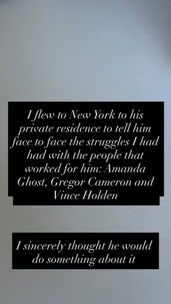 Rebel claims she “flew to New York to his private residence to tell him face to face the struggles” she’s had with the people working for him.