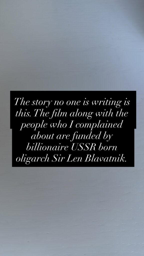 From there, Rebel claims that the “story no one is writing” is that The Deb and the producers she has complained about—like Amanda Ghost, Gregor Cameron, and Vince Holden—are all “funded by billionaire USSR born oligarch Sir Len Blavatnik.”