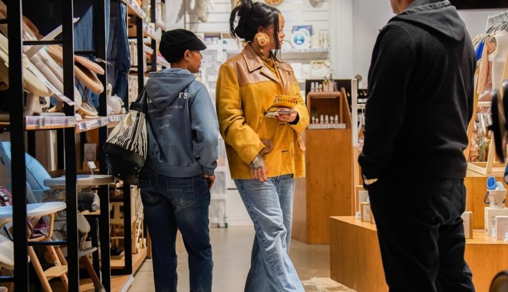 The 38-year-old “We Found Love” singer and Fenty Beauty mogul was seen shopping at baby store Bambino on Saturday (April 18) in Paris, France.