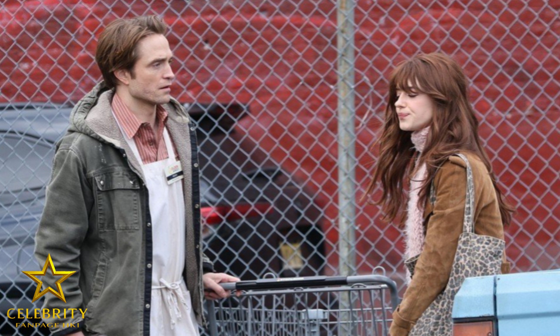 Robert foi visto usando um avental enquanto filmava em frente a um mercado internacional de peixes.