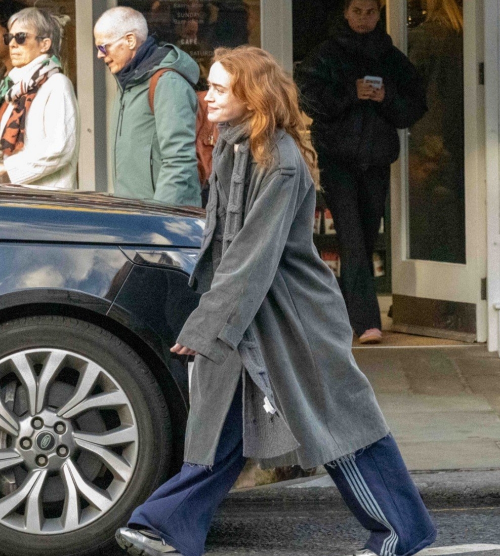 A estrela de Stranger Things, de 23 anos, foi vista procurando por seu motorista após sair de um supermercado em Notting Hill com uma grande sacola de compras no sábado (31 de janeiro), pois parecia que ele estava atrasado ou desaparecido.