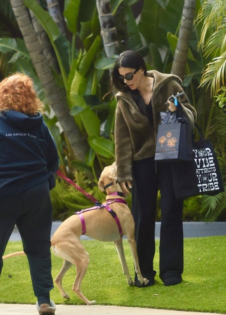 A atriz de 61 anos foi vista fazendo compras no sábado (21 de fevereiro) quando foi surpreendida por um cachorro em Beverly Hills, Califórnia.
