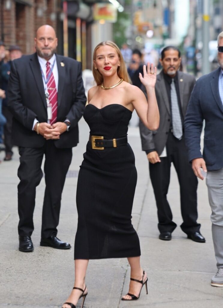 A estrela de Viúva Negra, de 40 anos, foi vista chegando e saindo do The Late Show com Stephen Colbert na segunda-feira (22 de setembro) em Nova York.
