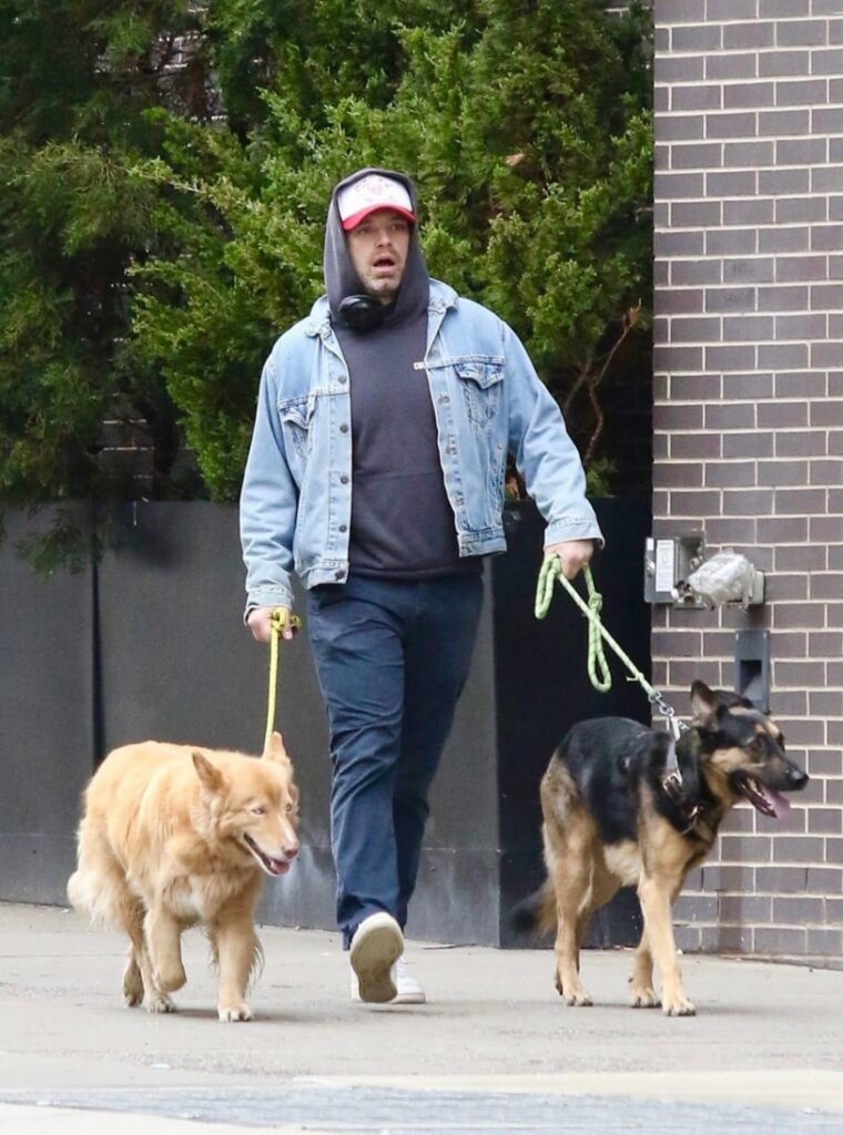 The 43-year-old The Falcon and the Winter Soldier actor took his dogs Zeus and Apollo for a walk around the neighborhood on Monday afternoon (March 16) in New York City.