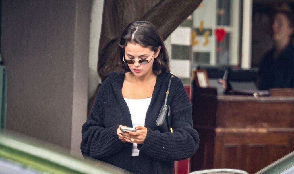 Para o passeio, ambos optaram por looks casuais. Selena usava um longo cardigã preto com uma camisa branca por baixo e calças pretas compridas. Ela também usava óculos de sol e uma bolsa Valentino.