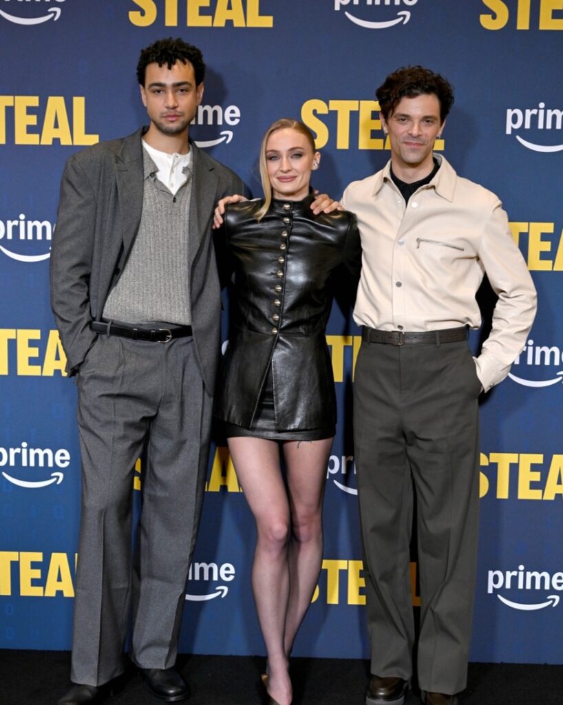 Sophie Turner surge elegante em couro preto para a exibição de ‘Steal’ com seus colegas de elenco.