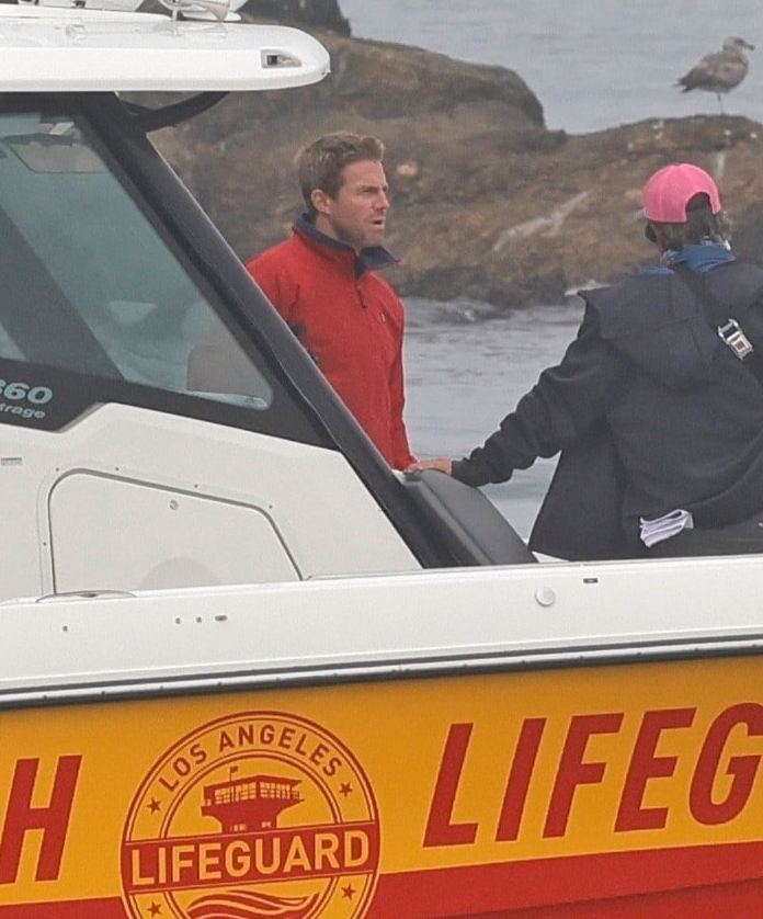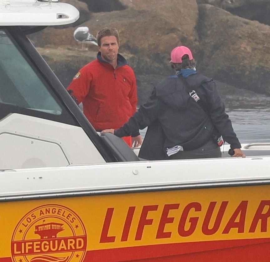 Stephen Amell Films Scenes for ‘Baywatch’ Reboot Series on Lifeguard Boat in L.A.