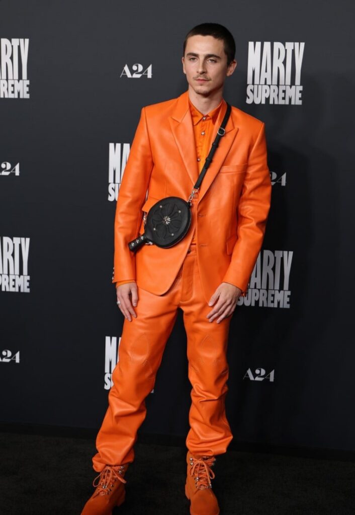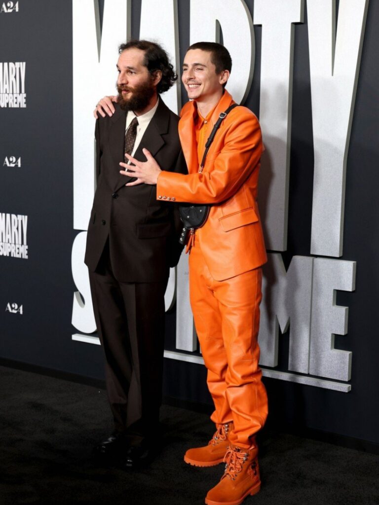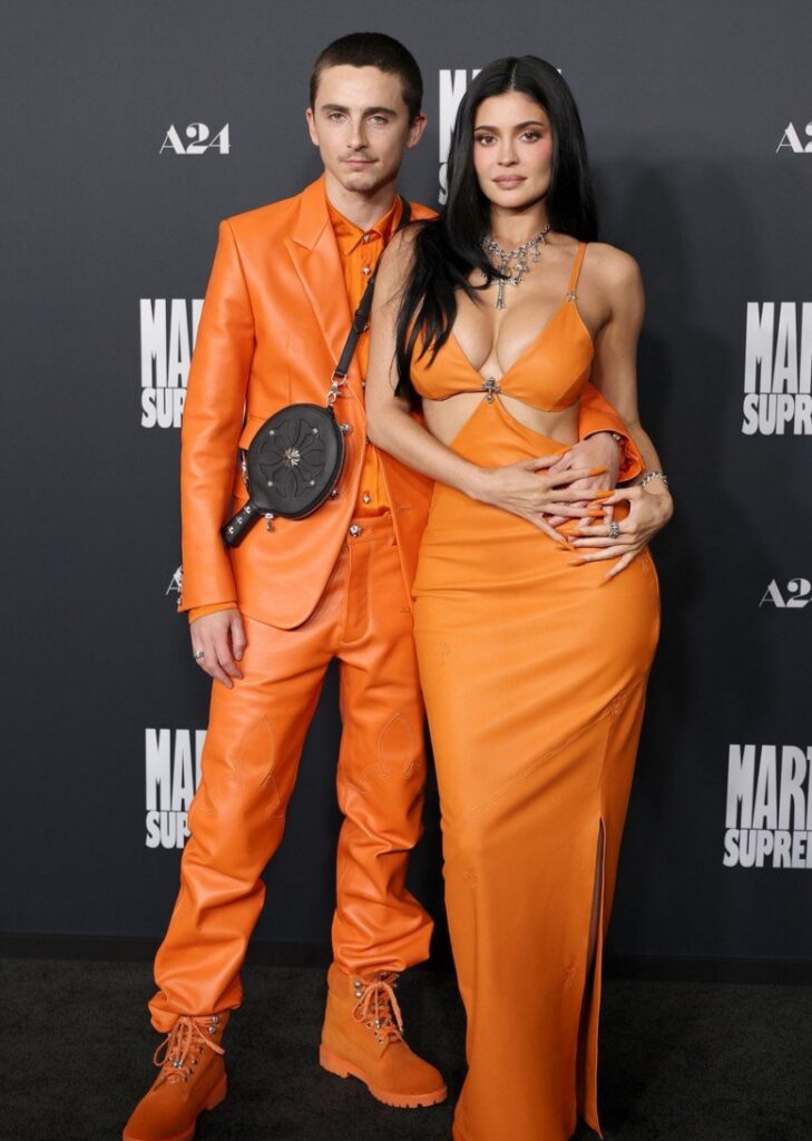 Timothée Chalamet e sua namorada, Kylie Jenner, usam looks laranja combinando na estreia de ‘Marty Supreme’ em Los Angeles!
