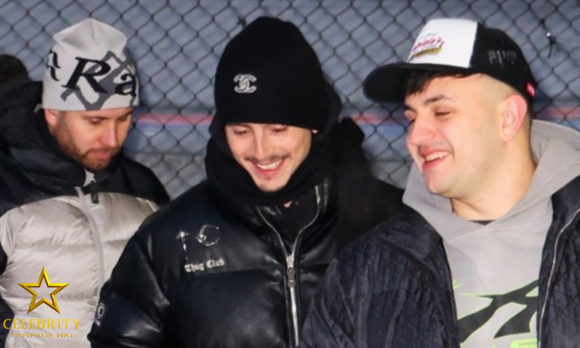 Para o evento, Timothée usava uma blusa preta de manga comprida com um cachecol combinando, calça branca, um gorro e óculos de sol. Ele também vestia um casaco preto e branco por cima, já que estava frio na cidade.