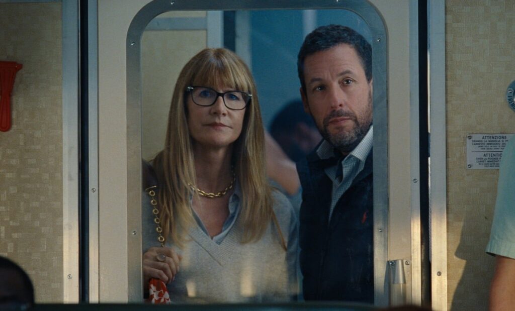 George Clooney e Adam Sandler são os coprotagonistas, com um enorme elenco de apoio repleto de estrelas. Aliás, Emily Mortimer, que também aparece no filme, coescreveu o roteiro com Noah.