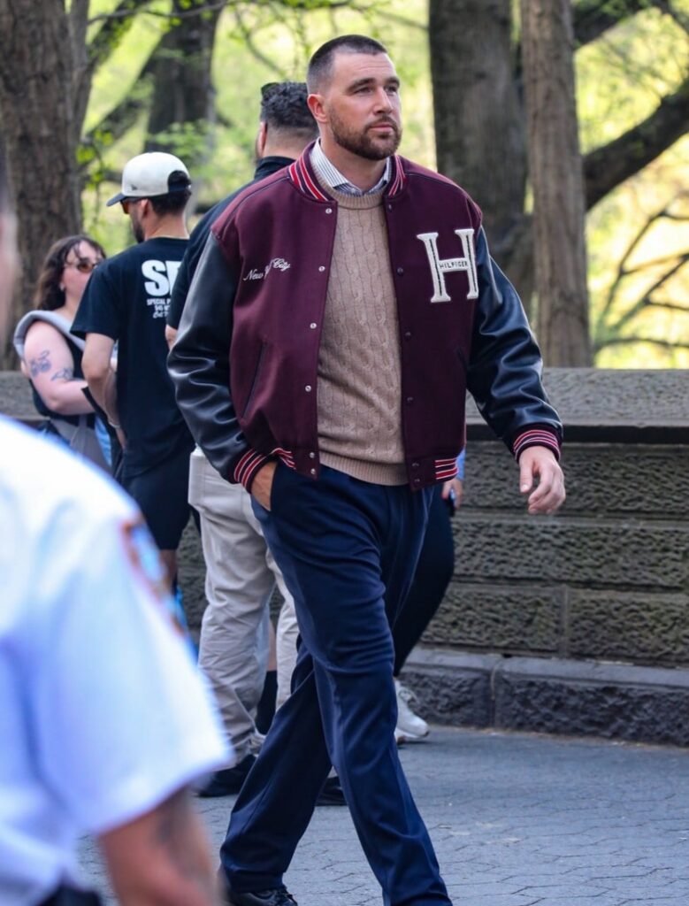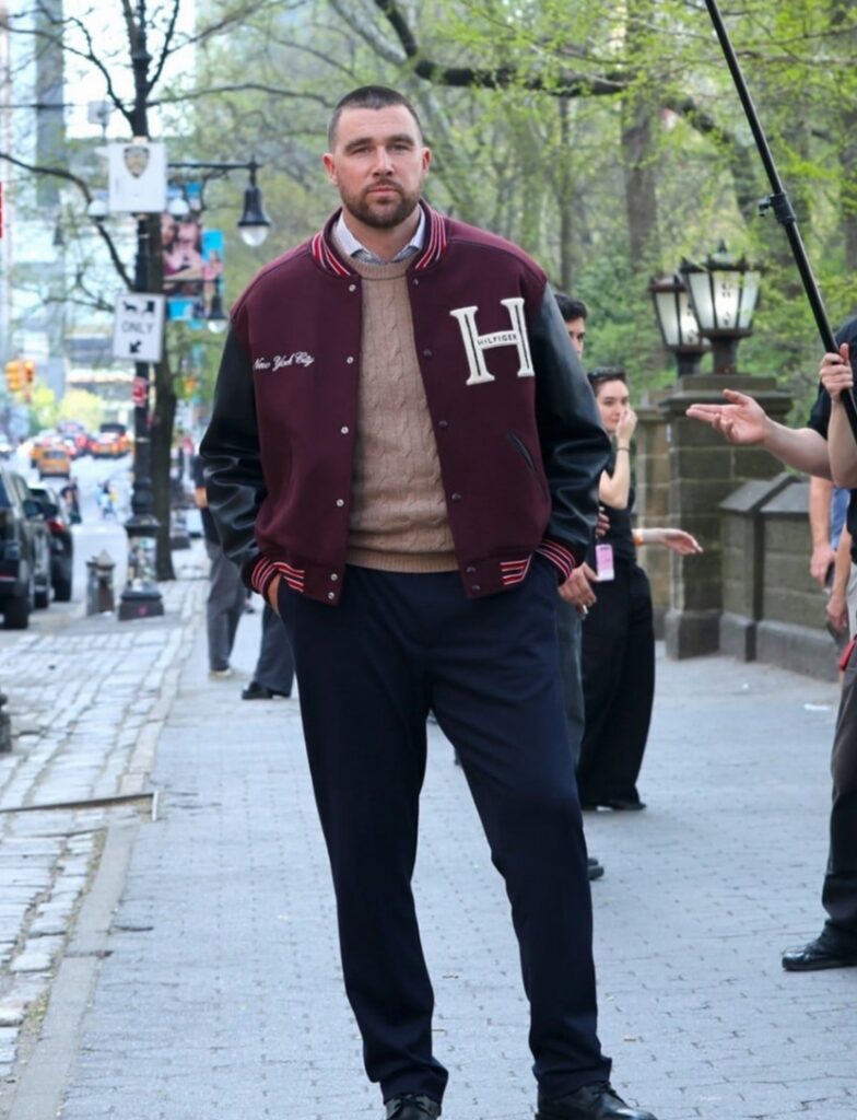 Travis Kelce Sports Varsity Jacket as He Poses for Tommy Hilfiger Shoot in NYC